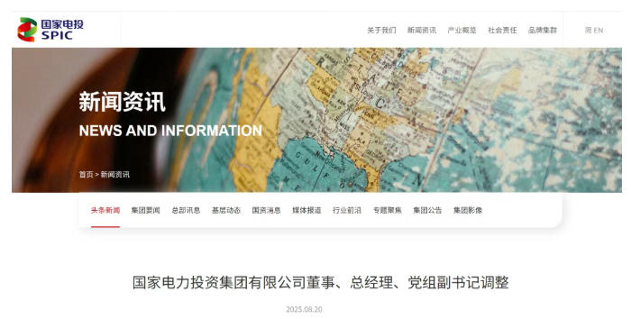 2025年8月20日,國(guó)家電力投資集團(tuán)有限公司召開領(lǐng)導(dǎo)班子(擴(kuò)大)會(huì)議。受中央組織部領(lǐng)導(dǎo)委托,中央組織部有關(guān)干部局負(fù)責(zé)同志宣布了黨中央關(guān)于國(guó)家電力投資集團(tuán)有限公司總經(jīng)理調(diào)整的決定: