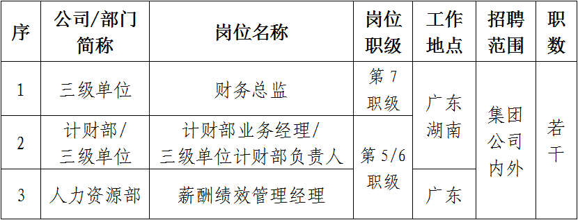 根據(jù)工作需要和公司招聘管理相關規(guī)定,現(xiàn)對廣東公司(海外公司)本部及下屬單位共3個崗位進行公開招聘。