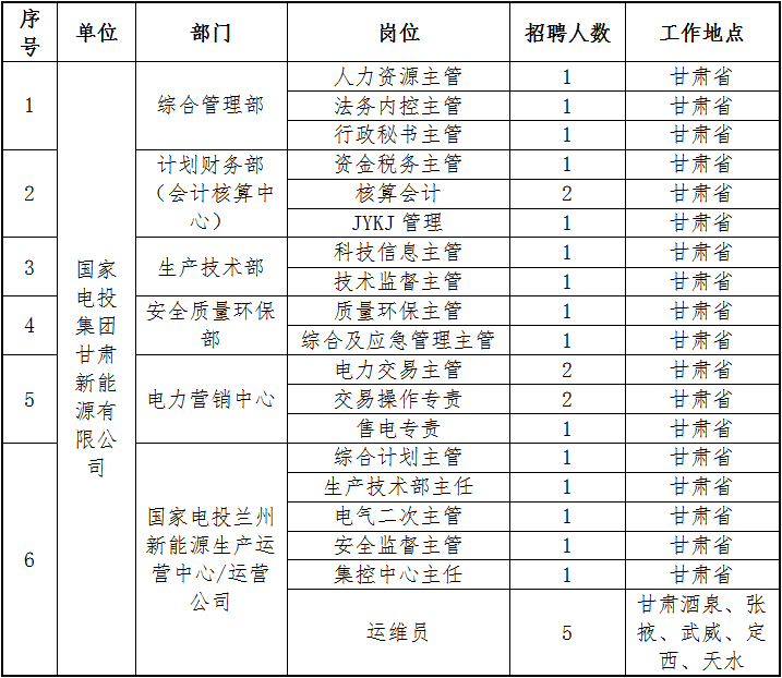 國(guó)家電投集團(tuán)甘肅新能源有限公司(簡(jiǎn)稱:國(guó)家電投甘肅新能源公司)成立于2016年,是國(guó)家電力投資集團(tuán)有限公司(簡(jiǎn)稱:國(guó)家電投)在甘肅地區(qū)設(shè)立的新能源投資、開(kāi)發(fā)、建設(shè)和運(yùn)營(yíng)企業(yè),與國(guó)家電投甘肅分公司一體化運(yùn)作。國(guó)家電投甘肅分公司為國(guó)家電投二級(jí)單位,主要承擔(dān)所在地區(qū)區(qū)域規(guī)劃、政府對(duì)接、市場(chǎng)開(kāi)發(fā)、電力營(yíng)銷、品牌建設(shè)等工作。