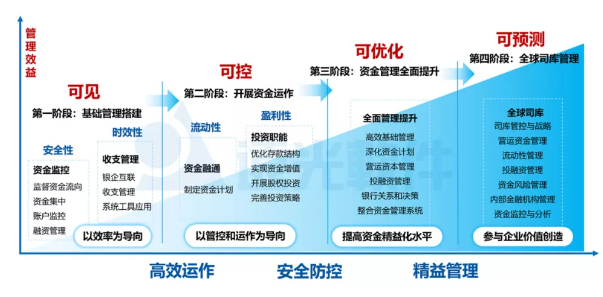 司庫管理注重強化營運資金、流動性、資本結構、利率匯率風險和融資的管控,通過司庫體系建設,企業(yè)可將資金被動管理轉(zhuǎn)變?yōu)橹鲃庸芾怼⒊肮芾?,實現(xiàn)集團各類金融資源可視、可控和增值,成為集團戰(zhàn)略落地的堅實保障。