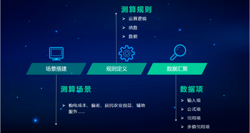 遠光軟件“代理購電測算”系統(tǒng)的基礎設計理念由三個詞構成:數(shù)據(jù)、規(guī)則、場景。