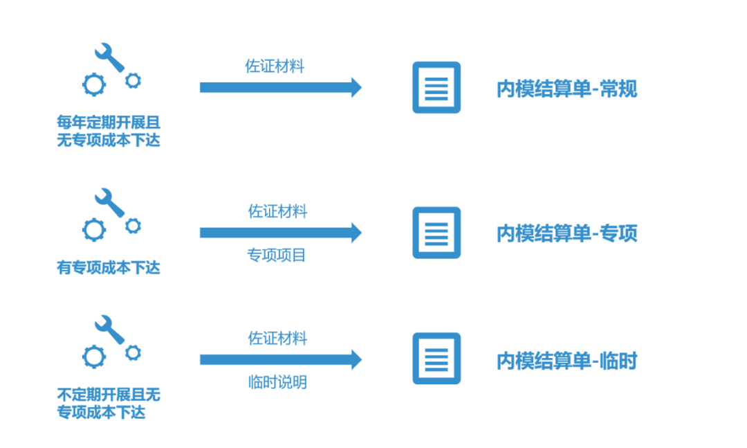 1、支持三種業(yè)務(wù)結(jié)算類型按照業(yè)務(wù)活動(dòng)開展頻率和活動(dòng)開展成本的不同,系統(tǒng)提供三種類型的內(nèi)模結(jié)算單進(jìn)行填報(bào),滿足不同業(yè)務(wù)需求。