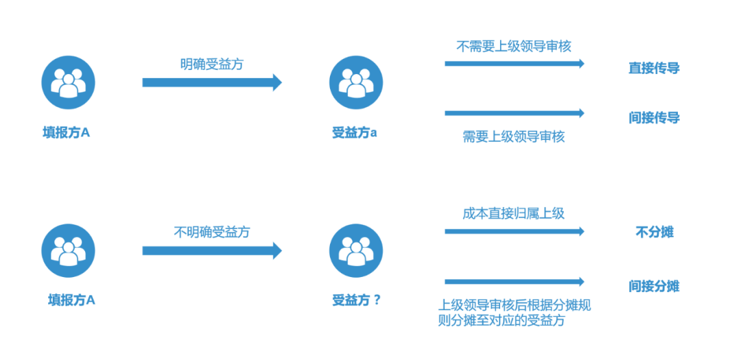 2、支持四種業(yè)務(wù)傳導(dǎo)方式按照業(yè)務(wù)活動(dòng)審核流程和內(nèi)部成本還原方式的不同,提供四種成本傳導(dǎo)方式。