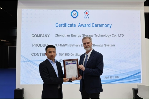 大會(huì)期間,中天科技發(fā)布了大型儲(chǔ)能、高壓直流海纜、大容量輸電三大領(lǐng)域的下一代新產(chǎn)品及系統(tǒng)解決方案,為全球能源高效轉(zhuǎn)型提供了技術(shù)裝備支撐。發(fā)布會(huì)上,中天儲(chǔ)能科技有限公司獲得TUV南德液冷儲(chǔ)能系統(tǒng)認(rèn)證并達(dá)成戰(zhàn)略合作。