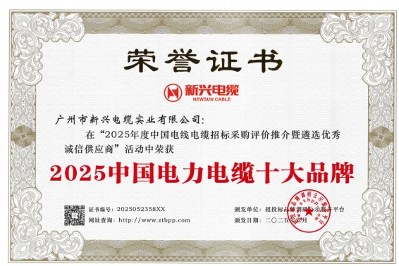 近日,在招投標(biāo)品牌調(diào)研公示服務(wù)平臺(tái)主辦的第四屆“2025年度中國(guó)電線電纜招標(biāo)采購(gòu)評(píng)價(jià)推介暨遴選優(yōu)秀誠(chéng)信供應(yīng)商活動(dòng)”中,新興電纜憑借卓越的產(chǎn)品質(zhì)量和技術(shù)實(shí)力,獲得五項(xiàng)行業(yè)重要認(rèn)可:"2025中國(guó)電力電纜供應(yīng)商綜合實(shí)力50強(qiáng)"、"2025中國(guó)民營(yíng)電線電纜企業(yè)10強(qiáng)"、"2025中國(guó)電線電纜招標(biāo)采購(gòu)十大推薦品牌"、"2025中國(guó)電力電纜十大品牌"和"2025中國(guó)電線電纜十大綠色品牌"。