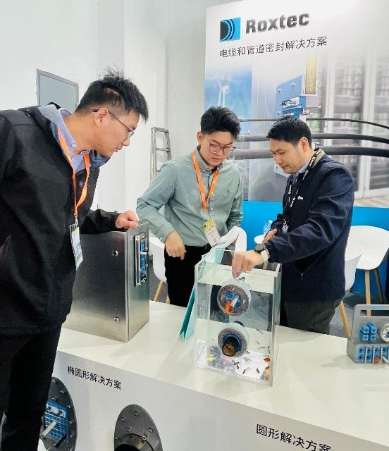 大批風(fēng)電設(shè)備制造商、開(kāi)發(fā)商及技術(shù)專(zhuān)家蒞臨參觀。國(guó)內(nèi)某風(fēng)電整機(jī)廠技術(shù)專(zhuān)家表示:“以往項(xiàng)目中,不同規(guī)格管線要匹配不同密封件,選型、庫(kù)存管理都很繁瑣,Roxtec多徑技術(shù)直接解決了這個(gè)痛點(diǎn),對(duì)提升安裝效率很有幫助。”