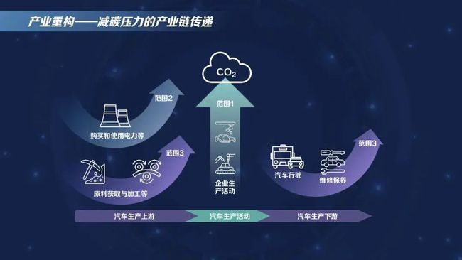 另外,產(chǎn)業(yè)重構(gòu)方面,減碳?jí)毫Φ漠a(chǎn)業(yè)鏈傳遞也很突出。現(xiàn)在越來越多的全球性大公司自主承諾減排,原來對(duì)一家企業(yè)到底排多少碳主要看它的生產(chǎn)過程,但現(xiàn)在已經(jīng)擴(kuò)大到產(chǎn)業(yè)鏈。一個(gè)產(chǎn)業(yè)鏈包括上游的原料和下游產(chǎn)品的應(yīng)用,把上下游綜合考慮起來,就會(huì)形成減碳?jí)毫Φ漠a(chǎn)業(yè)鏈傳遞。比如,中國(guó)現(xiàn)在是世界上最大的小汽車生產(chǎn)和消費(fèi)市場(chǎng),每年產(chǎn)銷2500—3000萬輛,這個(gè)量是美國(guó)和日本加起來的總和,這么大的量,對(duì)鋼材會(huì)有比較大的需求。一家承諾了整個(gè)產(chǎn)業(yè)鏈上要減碳的跨國(guó)公司在生產(chǎn)小汽車時(shí),就會(huì)要求上游生產(chǎn)鋼材的廠家也要跟著它減碳,這樣會(huì)形成倒逼,煉鋼廠如果達(dá)不到它的要求,它就會(huì)去找其他能達(dá)到要求的供應(yīng)商,所以在自主減排的目標(biāo)實(shí)現(xiàn)里會(huì)形成新的壓力傳遞,這是未來產(chǎn)業(yè)重構(gòu)里非常重要的驅(qū)動(dòng)因素。