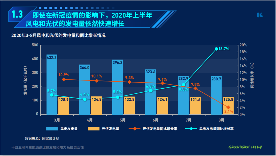 截至2019年底,全國非化石能源發(fā)電量為2.39萬億千瓦時,占全國發(fā)電量的32.6%,實現(xiàn)2030年非化石能源發(fā)電量占比50%的目標已過半程。而即使是在2020年新冠疫情的壓力下,中央政府也沒有松懈綠色復蘇和轉型的決心,今年上半年風電和光伏的發(fā)電量分別同比逆勢增長了6.8%和9.1%。在已提前實現(xiàn)了“十三五”可再生能源裝機目標之際,今年6月,國家發(fā)改委和能源局進一步提高了目標,計劃今年內風電和光伏發(fā)電裝機均達到240吉瓦左右。