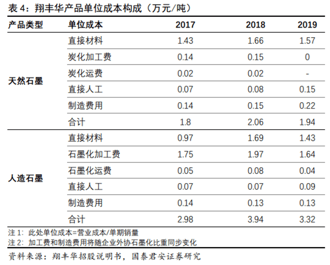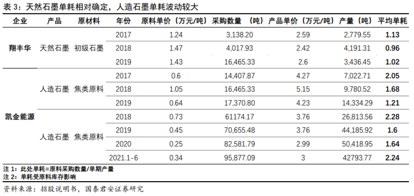 殘?zhí)悸?單耗):石墨負(fù)極材料中,天然石墨單耗相對(duì)確定,人造石墨單耗波動(dòng)較大,依據(jù)負(fù)極材料廠商披露的數(shù)據(jù)計(jì)算,單耗在1.21-2.28區(qū)間內(nèi)。單耗可能隨石油焦和針狀焦用量的占比差異而有所變化,除高端人造石墨主要采用針狀焦為主外,其余不同品質(zhì)的負(fù)極材料原料用量的具體配比未知。硬碳/軟碳負(fù)極中,酚醛樹(shù)脂分子中含有大量的芳香環(huán),殘?zhí)悸矢哂谄渌叻肿泳酆衔?,理論值?5~70%,產(chǎn)業(yè)化后可能低于50%,原料單耗2以上;生物質(zhì)原料的殘?zhí)悸士赡苤挥?0%;無(wú)煙煤的殘?zhí)悸蚀蟾?0-80%,但軟碳性能弱于硬碳。