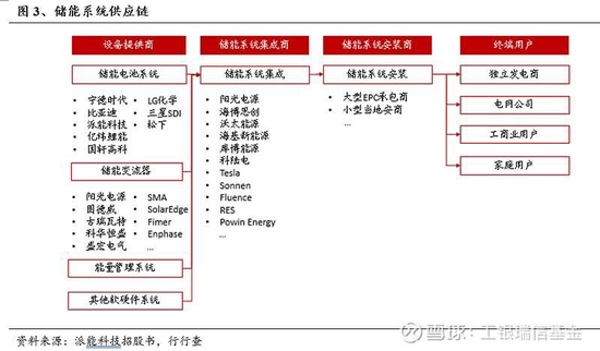 儲(chǔ)能產(chǎn)業(yè)鏈在電力體系中十分重要,諸多環(huán)節(jié)之間存在交集。儲(chǔ)能產(chǎn)業(yè)鏈上游主要包括電池原材料及生產(chǎn)設(shè)備供應(yīng)商等;中游主要為電池、電池管理系統(tǒng)、能量管理系統(tǒng)以及儲(chǔ)能變流器供應(yīng)商;下游主要為儲(chǔ)能系統(tǒng)集成商、安裝商以及終端用戶等。產(chǎn)業(yè)鏈涉及的環(huán)節(jié)眾多,從電池制造到EPC施工,再到各種場(chǎng)景下運(yùn)營(yíng),電池制造環(huán)節(jié)與動(dòng)力電池企業(yè)存在交集,EPC施工環(huán)節(jié)與光伏、風(fēng)電施工企業(yè)存在交集,運(yùn)營(yíng)商和電網(wǎng)企業(yè)存在交集。