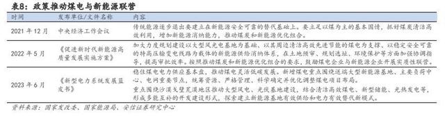 轉(zhuǎn)型不止囿于眼前的煤電,更在于牽手新能源。隨著我國碳達(dá)峰、碳中和目標(biāo)的提出,安全、清潔、經(jīng)濟(jì)的階段性不平衡問題日益突出,煤電與新能源間的發(fā)展矛盾逐漸成為新型電力系統(tǒng)建設(shè)中的重要議題,國家層面對煤電和新能源的協(xié)同發(fā)展也在進(jìn)行積極的思考與研究。2021 年 12 月中央經(jīng)濟(jì)工作會議,國家首次提出要立足以煤為主的基本國情,抓好煤炭清潔高效利用,增加新能源消納能力,推動煤炭和新能源優(yōu)化組合。2022 年 5 月,國家發(fā)改委、國家能源局聯(lián)合印發(fā)《促進(jìn)新時代新能源高質(zhì)量發(fā)展實施方案》,提出加大力度規(guī)劃建設(shè)大型風(fēng)光電基地,并按照推動煤炭和新能源優(yōu)化組合的要求,鼓勵煤電企業(yè)與新能源企業(yè)開展實質(zhì)性聯(lián)營。政府指導(dǎo)意見從“推動煤炭和新能源優(yōu)化組合”到“鼓勵煤電企業(yè)與新能源企業(yè)開展實質(zhì)性聯(lián)營”,方向更加明確、要求更為具體,為下一步產(chǎn)業(yè)結(jié)構(gòu)優(yōu)化調(diào)整指明道路。
