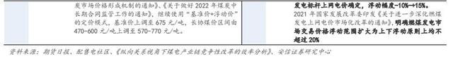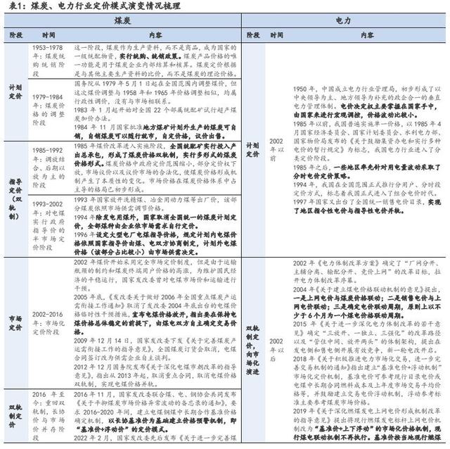 煤電矛盾的本質(zhì)是煤、電定價機(jī)制市場化程度不同。煤炭定價方面,2016 年以前我國煤炭價格經(jīng)歷了計劃價格、指導(dǎo)價格、市場價格等多種定價機(jī)制。2016 年末國家發(fā)改委聯(lián)合煤、電、鋼協(xié)會共同發(fā)布《關(guān)于平抑煤炭市場價格異常波動的備忘錄的通知》,要求 2016-2020 年間,建立電煤鋼煤中長期合作基準(zhǔn)價格確定機(jī)制,以長協(xié)基準(zhǔn)價為基礎(chǔ)建立價格預(yù)警機(jī)制,即“基準(zhǔn)價+浮動價”的定價模式。電力定價方面,2015 年國家開啟電力定價機(jī)制市場化改革,2020 年取消“煤電聯(lián)動”機(jī)制,同時將燃煤發(fā)電標(biāo)桿上網(wǎng)電價機(jī)制改為“基準(zhǔn)價+上下浮動”的市場化價格機(jī)制,基準(zhǔn)價格設(shè)定權(quán)下放至地方政府,浮動幅度由電力用戶等市場主體協(xié)商決定。