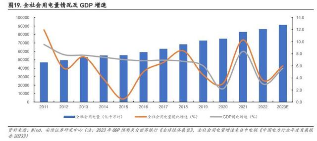 供給側(cè)改革“后遺癥”顯現(xiàn),階段性缺電頻發(fā)。2021 年以來的三年里,我國局部地區(qū)出現(xiàn)了電力供應(yīng)偏緊和短暫缺電的情況,先有 2021 年 8-9 月遼寧、吉林、江蘇、浙江、廣東等地相繼發(fā)布有序用電或限電通知,后有 2022 年夏季高溫天氣導(dǎo)致水電供應(yīng)持續(xù)受限,疊加居民用電負(fù)荷增加,各地為緩解用電高峰時段供電壓力再次發(fā)布限電通知,其中云南省電解鋁企業(yè)更是在 2022 年 9 月到 2023 年 2 月間三次收到限電通知。背后反映出來的是供給側(cè)改革后煤炭、火電的長期投資萎縮導(dǎo)致的產(chǎn)能不足現(xiàn)象,與此同時 2015 年后我國全社會用電量增速回升,疊加 2022 年極端高溫導(dǎo)致的空調(diào)降溫用電需求激增,電力供需的矛盾逐漸顯現(xiàn)。展望“十四五”后三年,根據(jù)《新形勢下“十四五”后三年中國電力需求形勢研判》(2023年發(fā)表)分析,“十四五”后三年中國用電量仍有較大增長空間,技術(shù)進(jìn)步、能源轉(zhuǎn)型、電力市場、氣候氣溫等因素對用電增長影響將增強,且最大負(fù)荷受產(chǎn)業(yè)結(jié)構(gòu)調(diào)整、空調(diào)與電采暖設(shè)備推廣、氣候氣溫等影響將更為突出,增速將高于用電增速,或進(jìn)一步增大電力保供壓力。