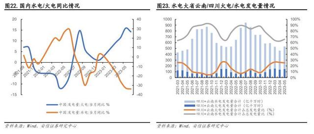 確保能源安全穩(wěn)定供應(yīng),煤電扛起保供重任。2023 年 4 月《2023 年能源工作指導(dǎo)意見》發(fā)布,不同于 2021 年指導(dǎo)意見中將“能源結(jié)構(gòu)”放在了目標(biāo)首位,國家能源局已經(jīng)連續(xù)兩年堅持把“增強供應(yīng)保障能力”放在主要目標(biāo)首位。由此可見,自 2021 年起頻發(fā)的缺電事件使人們意識到能源保供需求刻不容緩,而我國以煤為主的資源稟賦,決定了煤電在相當(dāng)長時期內(nèi)仍將承擔(dān)保障我國能源安全的重要作用。從數(shù)據(jù)來看,煤炭方面,在能源保供要求下國家通過核增產(chǎn)能、擴(kuò)產(chǎn)、新投產(chǎn)等方式持續(xù)新增煤炭產(chǎn)能,據(jù)國家統(tǒng)計局,2022 年我國實現(xiàn)煤炭產(chǎn)量 45.6 億噸,同比增長 10.5%,為近十年來最高增速。煤電方面,去年夏季以來,降水偏枯造成水電發(fā)電量持續(xù)出力不足,2022 年下半年至 2023 年上半年三峽水庫日均流入量為近五年來同期低位,據(jù)國家統(tǒng)計局,2023 年 1-6 月我國水力發(fā)電量同比下降 22.9%。為彌補水力發(fā)電不足,2023 年 1-6 月我國火力絕對發(fā)電量達(dá)到 29457 億千瓦時,同比增長 7.5%,占上半年總發(fā)電量的 71%。