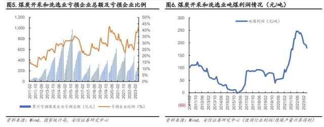 2023 年至今煤價中樞有所下移,煤炭行業(yè)虧損程度擴(kuò)大。據(jù)國家統(tǒng)計局,截至 2023 年6 月底,全國規(guī)模以上煤炭企業(yè) 4890 家,較去年同期增加 326 家,較 2022 年底增加 272 家。
