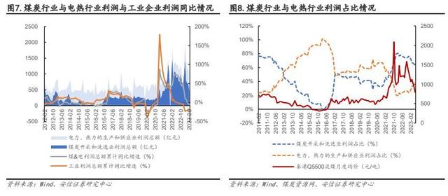 煤、電利潤重新分配下,煤電聯(lián)營或是優(yōu)質(zhì)選擇。立足于“富煤貧油少氣”的基本國情,我國形成了煤電為主、氣電為輔、生物質(zhì)發(fā)電為補充的火電發(fā)展格局。截至 2023 年 6 月,全國火電裝機(jī) 13.57 億千瓦,占發(fā)電總裝機(jī)容量的 50%(Wind)。作為關(guān)鍵的電網(wǎng)安全支撐,火電有力滿足了經(jīng)濟(jì)社會發(fā)展需要,成為我國能源供應(yīng)安全的壓艙石和基本盤。2021 年 10 月至今,由于上游供給約束導(dǎo)致的煤價高漲使得煤、電行業(yè)的利潤分配出現(xiàn)了不平衡,2021 年煤炭開采和洗選業(yè)利潤總額同比+212.7%,電力、熱力的生產(chǎn)和供應(yīng)業(yè)同比-57.1%,煤炭行業(yè)利潤總額占雙方合計利潤總額比達(dá)到 80%。2023 年前 6 月煤炭開采和洗選業(yè)利潤總額同比23.3%,電力、熱力的生產(chǎn)和供應(yīng)業(yè)同比+46.4%,煤炭行業(yè)利潤總額占雙方合計利潤總額比自2022 年 76%下降至 62%。而 2016 年供給側(cè)改革后雙方利潤分配基本維持在各半水平,因此煤炭行業(yè)或仍面臨業(yè)績下行的壓力。在煤、電利潤重新分配的時點下,為解決上述煤電矛盾,煤電聯(lián)營或許是優(yōu)質(zhì)選擇。