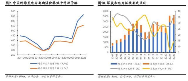 平抑周期波動、協(xié)同上下游降本,煤電一體強化業(yè)績穩(wěn)定性。煤電聯(lián)營可以使煤企和電企建立一種互補的、長效的利益共享、風(fēng)險共擔(dān)的機(jī)制,降低因為煤價波動帶來的經(jīng)營風(fēng)險,確保電廠燃料長期穩(wěn)定供應(yīng)的同時還可減少中間采購環(huán)節(jié),大幅降低發(fā)電成本并鎖定下游火電利潤。以中國神華為例:1)內(nèi)部降本方面,據(jù)公司年報,2011 年至今中國神華發(fā)電分部80%以上煤炭源于內(nèi)部采購,且采購價格均低于外部銷售價格,最大限度降低電廠用煤成本。