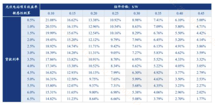 圖:光伏電站項目收益率敏感性測算表 (信息來源:華創(chuàng)證券)