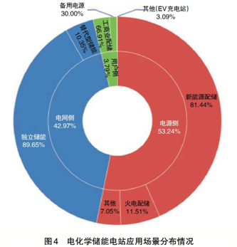 電化學(xué)儲能主要集中在電源側(cè)新能源配儲和電網(wǎng)側(cè)獨(dú)立儲能。根據(jù)《統(tǒng)計(jì)數(shù)據(jù)》,截至2023年6月底,新能源配儲和獨(dú)立儲能累計(jì)投運(yùn)總裝機(jī)合計(jì)占比達(dá)80%以上。當(dāng)前,全國已有多個(gè)省份發(fā)布新能源配儲政策,大部分省份配儲比例在5%~30%之間,配置時(shí)長以1~2小時(shí)為主,最高可到4小時(shí)。截至2023年6月底,累計(jì)投運(yùn)新能源配儲裝機(jī)6.20吉瓦,其中今年上半年新增裝機(jī)約3.38吉瓦。自2021年以來,我國陸續(xù)出臺了獨(dú)立儲能示范項(xiàng)目建設(shè)、鼓勵(lì)共享租賃、鼓勵(lì)參與電力現(xiàn)貨市場交易及輔助服務(wù)市場交易等一系列支持政策。根據(jù)《統(tǒng)計(jì)數(shù)據(jù)》,截至2023年6月底,累計(jì)投運(yùn)獨(dú)立儲能裝機(jī)5.51吉瓦,其中今年上半年新增裝機(jī)約3.41吉瓦,獨(dú)立儲能發(fā)展勢頭迅猛(見圖4)。