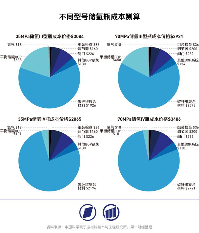 ?、粜蛢淦坎粌H性能更優(yōu),成本也低于Ⅲ型儲氫瓶。根據(jù)中國科學(xué)院寧波材料技術(shù)與工程研究所近期的測算,35MPa、70MPa的儲氫Ⅲ型瓶成本價格分別為3084美元、3921美元,而35MPa、70MPa的儲氫Ⅳ型瓶成本價格分別為2865美元和3486美元,分別低7%和11%。
