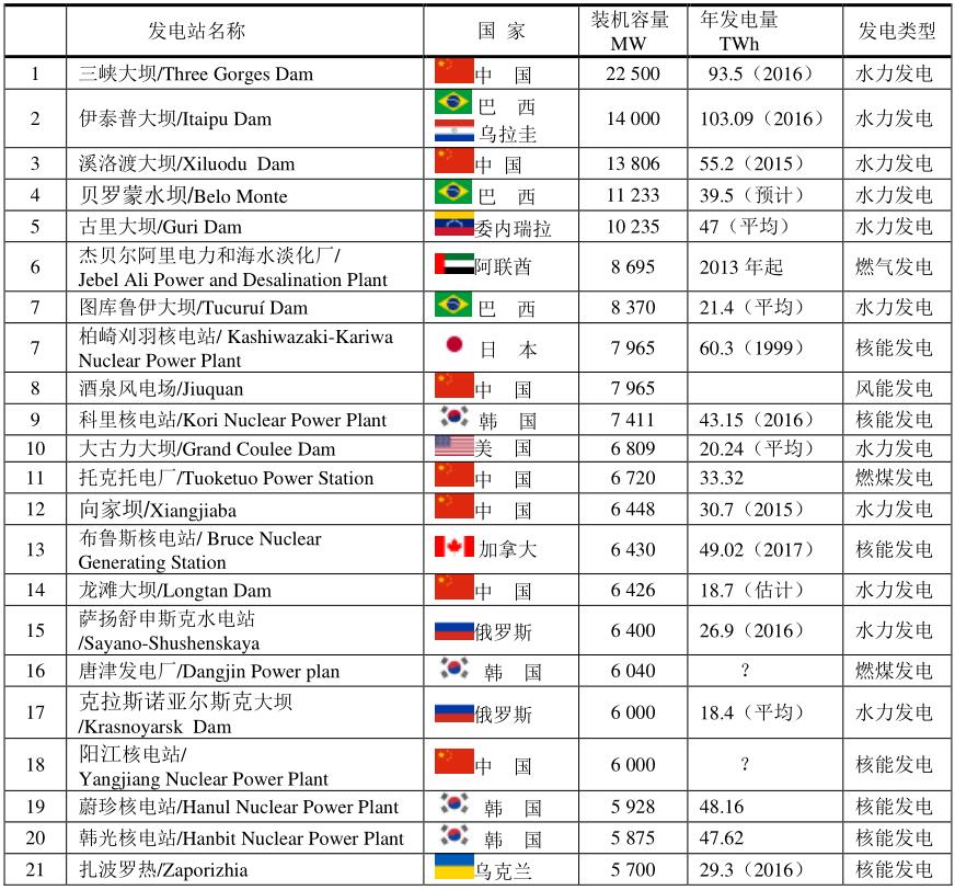 6、世界上最大的21座發(fā)電站