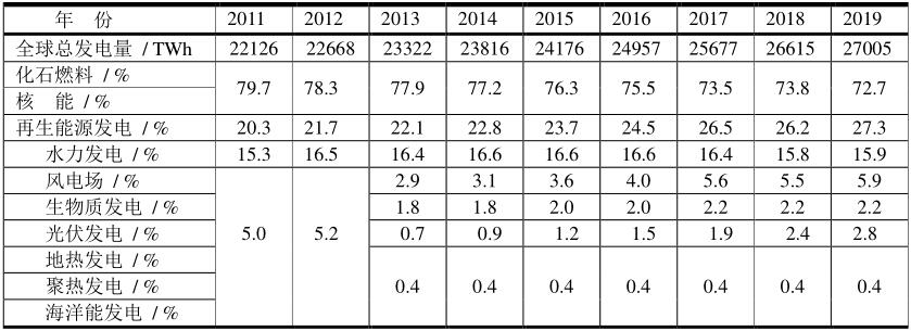 2011~2019年全球電力結(jié)構(gòu)匯總