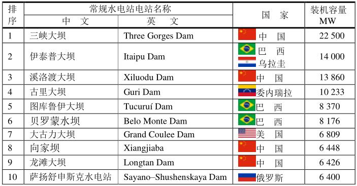 中國(guó)湖北省的三峽水電站仍然是世界上最大的水電站,總裝機(jī)容量為22.50 GW;位于巴西和巴拉圭的伊泰普水電站是世界第二大水電站,裝機(jī)容量為14.00 GW。不過(guò),伊泰普水電站所處的巴拉那河水量豐沛且季節(jié)分布相對(duì)均衡,幾乎可以全年滿負(fù)荷發(fā)電;而三峽水電站則每年都會(huì)經(jīng)歷約6個(gè)月的枯水期,從而限制了其發(fā)電量。