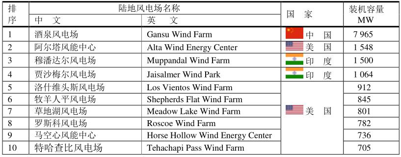 陸地上最大的風(fēng)電場(chǎng)是中國(guó)甘肅酒泉風(fēng)電基地。