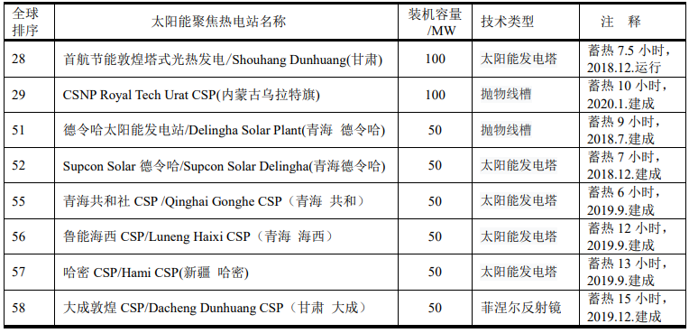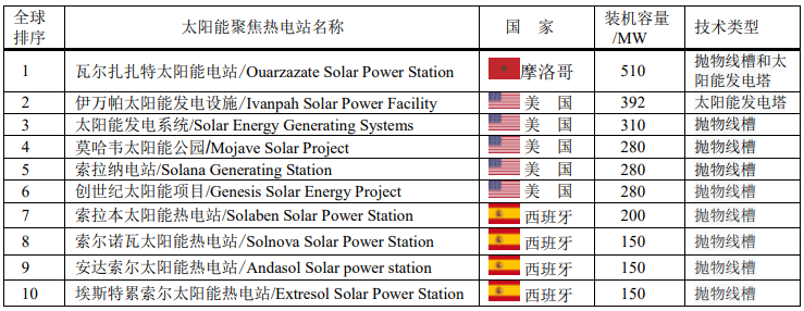 另外,中國還有五座太陽能聚焦熱電站已立項但尚未實施。
