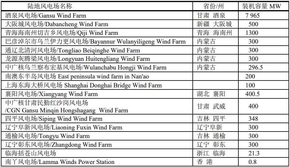目前全球裝機容量大于250 MW的陸上風電場有85個風電場,待建的風電場有16個陸上風電場已經(jīng)立項。