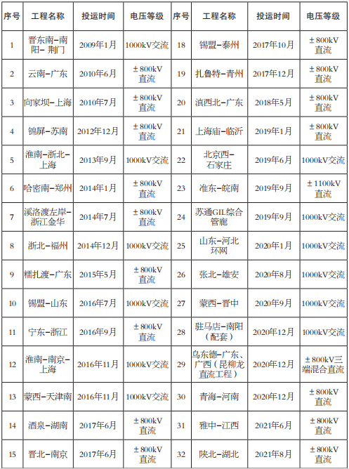 表6 我國(guó)已建成投運(yùn)特高壓工程