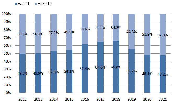 圖18 2012~2021年電網(wǎng)電源投資占比情況