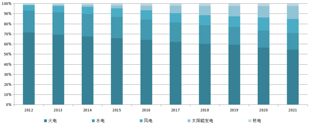 圖5 2012~2021年全國(guó)電力裝機(jī)結(jié)構(gòu)