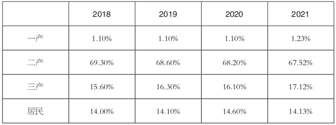 表2 2018~2021年全社會(huì)用電結(jié)構(gòu)