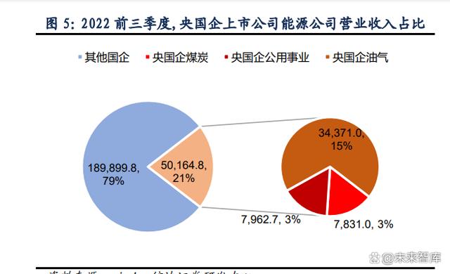 我們認為,能源類央國企在全部國央企中是不可或缺的一部分。第一,從經(jīng)濟發(fā)展角度,國 內(nèi)經(jīng)過疫情三年,經(jīng)濟形勢下行,亟待復(fù)蘇,能源行業(yè)是重要支撐和基礎(chǔ)性產(chǎn)業(yè),在保障重 點領(lǐng)域供應(yīng)方面有不可忽視的作用。另一方面,行業(yè)經(jīng)濟貢獻大(2022 年前三季度營業(yè)收 入占比 21%,凈利潤占比 16%)且下游產(chǎn)業(yè)較多,在推動復(fù)蘇方面也是較為重要的助力。 第二,從體量上看,能源板塊也是央國企上市公司改革的重要部分,上市公司的個股數(shù)量 (9%),市值占比(13%)均占全部國央企上市公司的較大比重。 第三,從政策角度上講,如上文提到的 2023 年的央企“一利五率”考核指標保持了“利潤 總額增長率”、“全員勞動強度”的考核,體現(xiàn)了國家對于央企拉動 GDP 貢獻的重視,能 源類央國企在營業(yè)收入和凈利潤兩項數(shù)據(jù)表現(xiàn)上較為出色,正符合了國家政策導(dǎo)向。