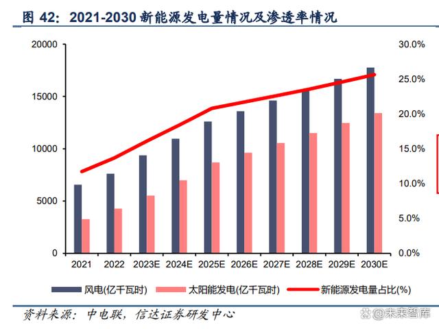 風(fēng)光電量仍將保持高增速增長,滲透率有望年內(nèi)突破 15%。2023 年 4 月 6 日,國家能源局 發(fā)布《2023 年能源工作指導(dǎo)意見》,提出“非化石能源發(fā)電裝機占比提高到 51.9%左右, 風(fēng)電、光伏發(fā)電量占全社會用電量的比重達到 15.3%。”的目標。我們假設(shè) 2023 年年內(nèi)新 增風(fēng)電和光伏并網(wǎng)裝機可達18000萬千瓦左右,根據(jù)測算(基準情景下),風(fēng)電與光伏發(fā)電 量之和的占比可提升至 16.1%。 風(fēng)光持續(xù)快速滲透,消納壓力或?qū)@現(xiàn)。我們認為,高比例新能源接入下的電網(wǎng)將面臨系 統(tǒng)性成本快速抬升的問題,輔助服務(wù)費用或?qū)⒊霈F(xiàn)指數(shù)式的上升。以國內(nèi)情況為例,2019 年全國新能源電量占比為 7%,國家能源局公布全國輔助服務(wù)費用占全社會電費比例為 1.47%;而根據(jù)山西電力現(xiàn)貨市場的經(jīng)驗,在 2022年新能源電量占比達到 16%時,其輔助 服務(wù)電費占全社會電費比例為5%左右。因此,在新能源滲透率翻一番時,輔助服務(wù)費用即 系統(tǒng)調(diào)節(jié)成本出現(xiàn)了接近翻兩番的情況,呈指數(shù)性抬升。