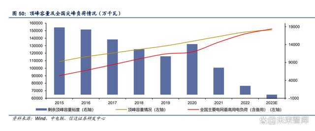 頂峰裝機容量裕度或?qū)⑹锥染o缺,電力供需矛盾年內(nèi)或?qū)⒃俣燃せ?023 年可投產(chǎn)火電裝 機為 2021 年左右開工建設(shè)項目,我們預(yù)計投產(chǎn)規(guī)模約為 4000 萬千瓦;水電核電可投產(chǎn)裝 機為“十三五”中期開工建設(shè)項目,預(yù)計合計投產(chǎn)規(guī)模為 1000萬千瓦。據(jù)我們計算,2023年 內(nèi)頂峰容量約為 15.1 億千瓦,將首度少于全國用電尖峰負荷(含備用)。2023 年 1 月 19 日,中電聯(lián)發(fā)布《2023 年度全國電力供需形勢分析預(yù)測報告》,預(yù)計 2023 年全國電力供需總體緊平衡,部分區(qū)域用電高峰時段電力供需偏緊。迎峰度夏期間,華東、華中、南方區(qū) 域電力供需形勢偏緊;華北、東北、西北區(qū)域電力供需基本平衡。迎峰度冬期間,華東、 華中、南方、西北區(qū)域電力供需偏緊;華北區(qū)域電力供需緊平衡;東北區(qū)域電力供需基本 平衡。