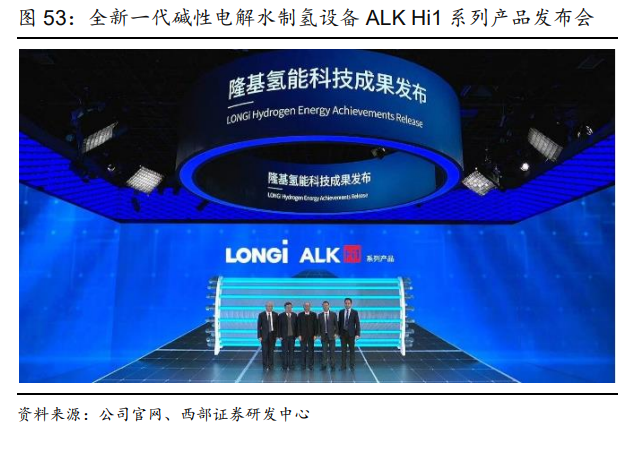 實(shí)施“綠電+綠氫”戰(zhàn)略,氫能業(yè)務(wù)蓬勃發(fā)展。光伏發(fā)電已成為全球最具經(jīng)濟(jì)性的清潔能 源,“綠電+綠氫”將推動制氫成本 LCOH(單位制氫成本)的下降,同時有效克服可再生能 源間歇性、儲存性問題。隆基氫能提供的“綠電+綠氫”解決方案能全面覆蓋合成甲醇、合 成氨、鋼鐵冶煉、石油煉化等領(lǐng)域。隆基氫能作為領(lǐng)先企業(yè),在 2022 年 5 月成功入圍中 石化首個萬噸級綠氫示范項(xiàng)目,為其提供分布式光伏和光伏地面電站的解決方案,并提供 綠氫生產(chǎn)裝備以及制氫相關(guān)解決方案。萬華化學(xué)與隆基綠能于 2023 年達(dá)成戰(zhàn)略合作,實(shí) 現(xiàn)產(chǎn)業(yè)優(yōu)勢互補(bǔ),助力“雙碳”目標(biāo)實(shí)現(xiàn)。據(jù)證券之星披露,隆基綠能擬與可再生和清潔 能源開發(fā)商 Invenergy 合作,在美國俄亥俄州建設(shè)一處 5GW 光伏組件工廠。