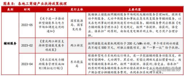 多形式扶持政策結合,鼓勵工商業(yè)儲能發(fā)展。為加快工商儲的滲透率,盡早實現(xiàn)商業(yè)化,國家和省市層 面均出臺了輔助服務、補貼、隔墻售電政策,為運營商創(chuàng)造多層次的盈利渠道。輔助服務方面,我國電 力輔助服務市場中交易品種包括調峰、調頻、無功調節(jié)、備用和黑啟動等,近年來儲能和可調節(jié)負荷也 納入了提供輔助服務的市場主體之中;補貼方面,如今年 4 月東北監(jiān)管局連發(fā)兩文明確新型儲能各類補 償:針對新型儲能,如果 AGC 可用率達到 98%以上,按 AGC 可用時間每臺次(電站)補償 20 元/時; 隔墻售電方面,浙江省于 2023 年 1 月 1 日起實施最新電力條例:分布式發(fā)電企業(yè)可以與周邊用戶按照 規(guī)定直接交易。