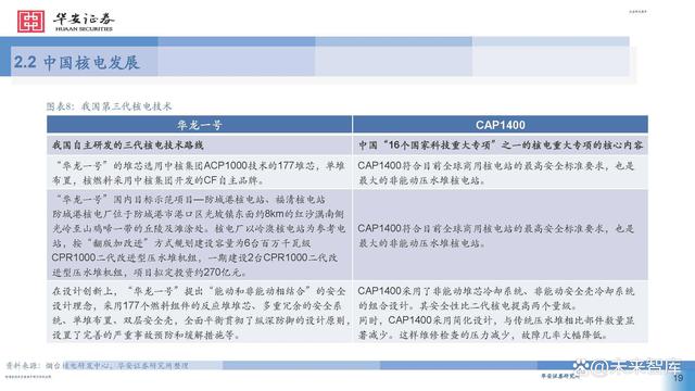 通過對國際先進堆型的引進和消化吸收,應運而生的自 主技術“華龍一號”國內外首堆也相繼商運,標志著我 國真正自主掌握了三代核電技術,由核電大國進入核電 強國。同時,借鑒AP1000技術理念的自主三代核電技術 “國和一號”示范工程有序開建,全球首座具有第四代 核電技術主要特征的高溫氣冷堆核電站示范工程實現(xiàn)成 功并網發(fā)電,全球首個陸上商用模塊化小堆“玲龍一號” 開建,標志著我國核電水平躋身世界前列。