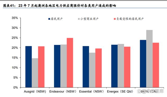 23 上半年澳洲電價處于環(huán)比上升階段,AER 預(yù)計下半年起電價上升 20%~25%。盡管相較 于 22 年,23 年眾多能源問題有所緩解,但是長期來看,煤炭和天然氣供應(yīng)仍存在不利因 素,例如國際能源價格仍然偏高,Liddell 發(fā)電站于 23 年 4 月關(guān)閉導(dǎo)致煤電減少,澳洲國內(nèi) 天然氣供應(yīng)逐漸減少等。根據(jù) AER 統(tǒng)計,23Q2 昆士蘭州、新南維爾州、維多利亞州、南 澳大利亞州四州的電力現(xiàn)貨價格分別達到 139/148/96/136 澳元/MWh,同比-59.6%/-53.9% /-60.2%/-51.4%,雖然有所下降,但是均仍顯著高于前期 21 年全年平均水平(72.63 澳元 /MWh)。由于通脹、俄烏沖突和電廠老化造成的批發(fā)價格上升,下半年電價或仍處于上升 通道。根據(jù) AER,23 年 7 月 1 日起,電價預(yù)計將有同比 20%~25%的漲幅,主要影響對象 是家庭用戶和小商販,或?qū)⒅苯哟碳ぜ彝δ馨惭b需求。