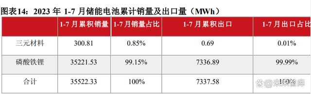 據(jù)中國汽車動(dòng)力電池產(chǎn)業(yè)創(chuàng)新聯(lián)盟統(tǒng)計(jì)數(shù)據(jù),2023年1-7月,我國儲(chǔ)能電池累計(jì)銷量達(dá)35.5GWh。其中磷酸鐵鋰電池累計(jì)銷量35.2GWh,我國儲(chǔ)能電池累計(jì)出口達(dá)7.3GWh,其中磷酸鐵鋰電池累計(jì)出口7.3GWh。