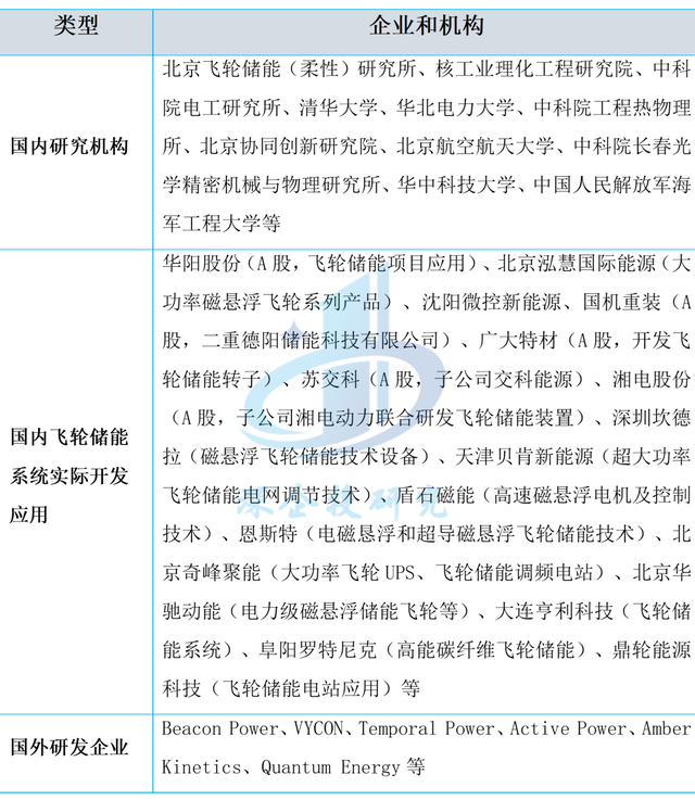 表3 飛輪儲能系統(tǒng)和裝置開發(fā)應(yīng)用重點機(jī)構(gòu)
