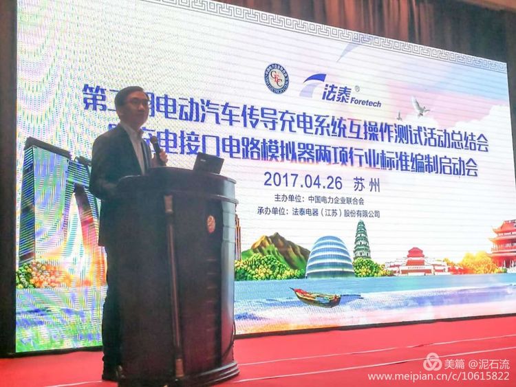 2017年4月26日,第二期電動(dòng)汽車傳導(dǎo)充電系統(tǒng)互操作性測(cè)試活動(dòng)總結(jié)會(huì)在蘇州召開,本次會(huì)議由中國(guó)電力企業(yè)聯(lián)合會(huì)標(biāo)準(zhǔn)化管理中心、能源行業(yè)電動(dòng)汽車充電設(shè)施標(biāo)準(zhǔn)化技術(shù)委員會(huì)充電檢測(cè)認(rèn)證標(biāo)準(zhǔn)工作組、中國(guó)電動(dòng)汽車充電基礎(chǔ)設(shè)施促進(jìn)聯(lián)盟標(biāo)準(zhǔn)實(shí)施促進(jìn)專業(yè)委員會(huì)聯(lián)合主辦,來(lái)自全國(guó)電動(dòng)汽車行業(yè)、充電設(shè)施行業(yè)、電動(dòng)汽車及充電設(shè)施檢測(cè)機(jī)構(gòu)及相關(guān)企業(yè)代表共150多人參加了會(huì)議。