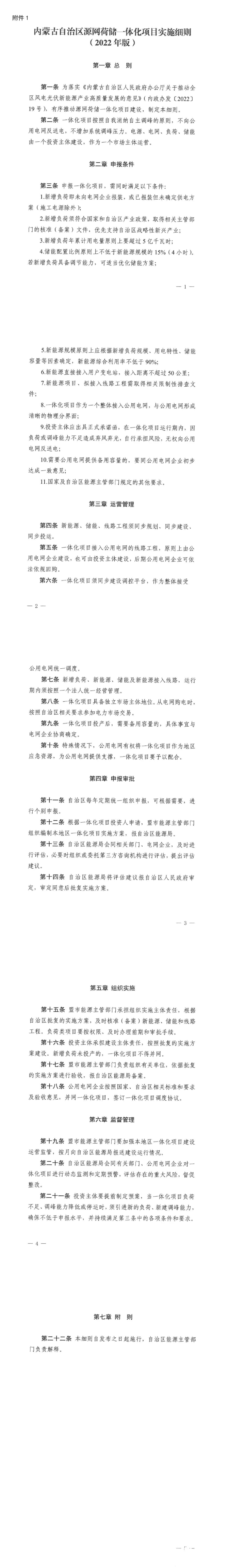 7月27日,內(nèi)蒙古能源局發(fā)布《內(nèi)蒙古自治區(qū)源網(wǎng)荷儲一體化項目實施細則(2022年版)》,其中提出,一體化項目按照自我消納自主調(diào)峰的原則,不向公用電網(wǎng)反送電,不增加系統(tǒng)調(diào)峰壓力。電源、電網(wǎng)、負荷、儲能由一個投資主體建設,作為一個市場主體運營。