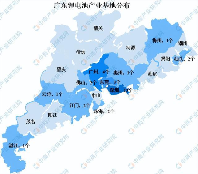 廣東是國(guó)內(nèi)重要的鋰電池基地,主要集中分布在珠三角地區(qū)。其中,深圳13個(gè),廣州4個(gè),東莞3個(gè),佛山、江門(mén)、汕頭、珠海各2個(gè),惠州、梅州、云浮、湛江各1個(gè)。