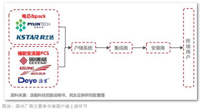 從表后和工商業(yè)儲(chǔ)能來(lái)看,國(guó)內(nèi)企業(yè)大部分以代工和海外品牌合作的模式進(jìn)入海外市場(chǎng),也是參與產(chǎn)業(yè)鏈上游的關(guān)鍵環(huán)節(jié)——電芯、PACK和逆變器。