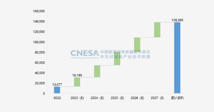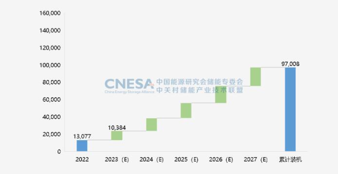 圖6:未來5年中國新型儲能累計(jì)投運(yùn)裝機(jī)規(guī)模預(yù)測(2023-2027年) 單位:MW