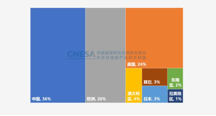 圖3:2022年全球新增投運(yùn)新型儲能項(xiàng)目的地區(qū)分布(MW%)