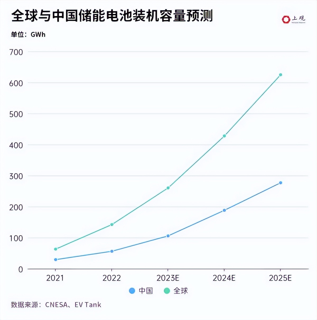 中國鋰電池儲能產(chǎn)業(yè)正在快速擴張。根據(jù)中關(guān)村儲能產(chǎn)業(yè)技術(shù)聯(lián)盟和ev tank的預(yù)測,2025年中國儲能電池裝機容量將達到276.8吉瓦時,占全球近45%。當(dāng)前,國內(nèi)傳統(tǒng)鋰電池龍頭企業(yè),如寧德時代、比亞迪、億緯鋰能等,在儲能方面多有布局。
